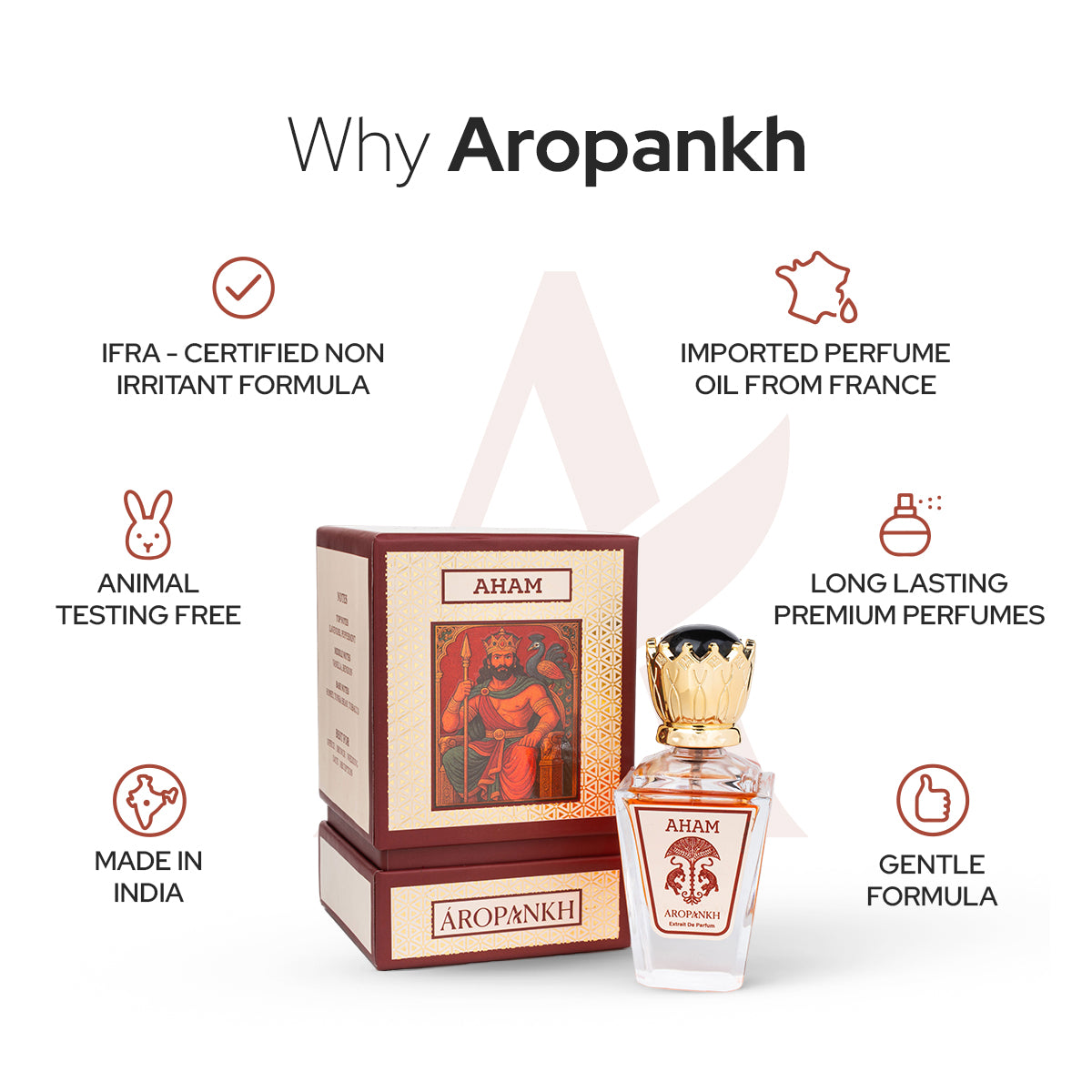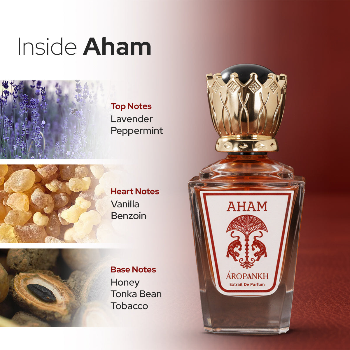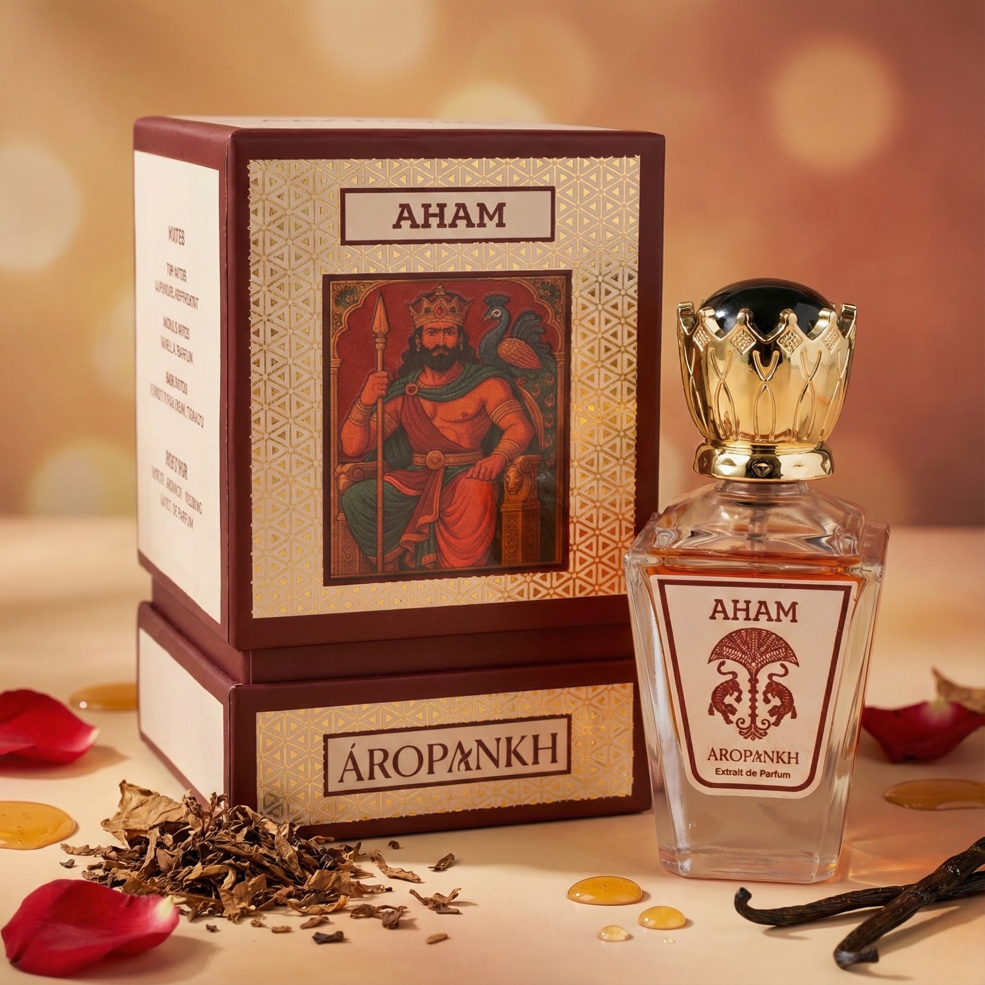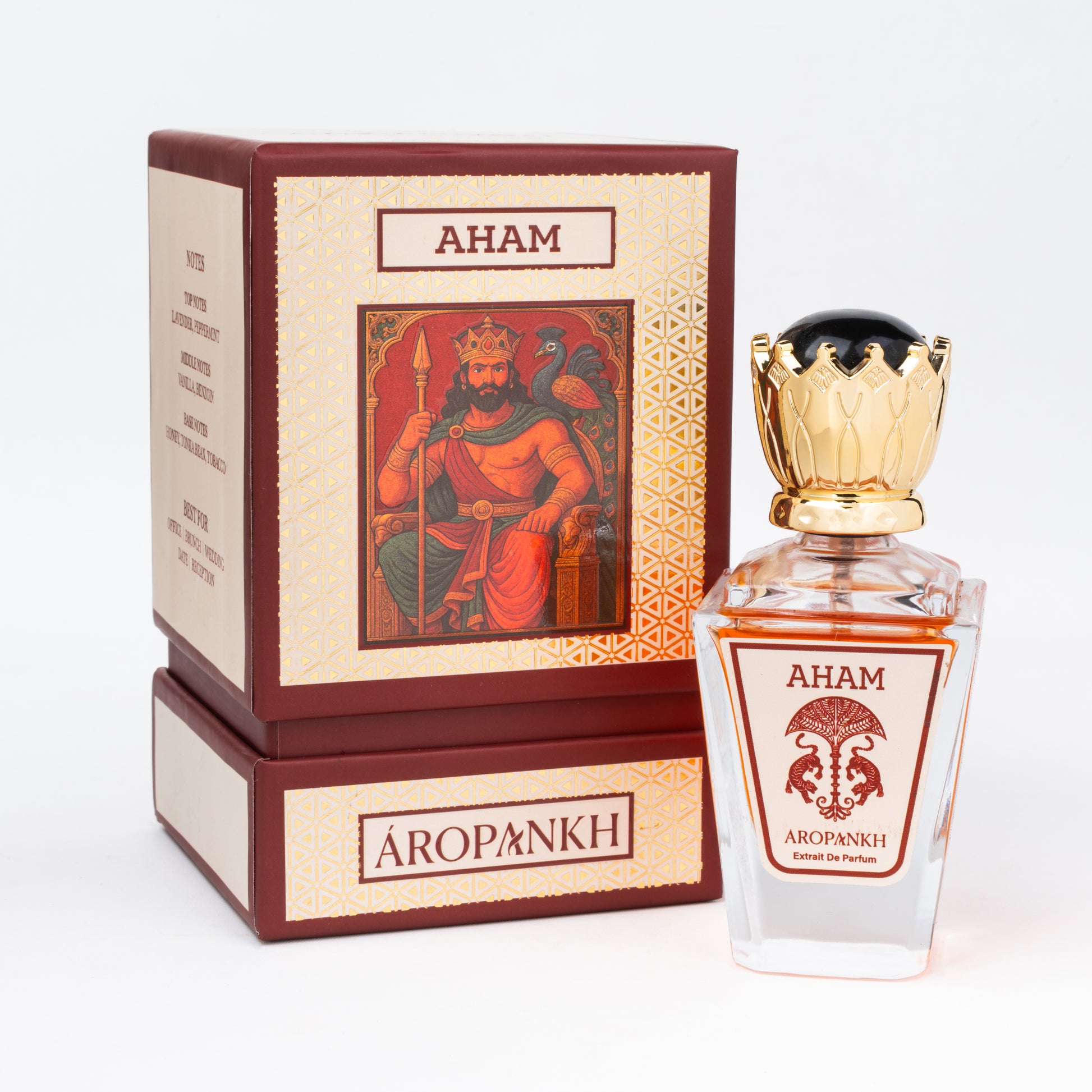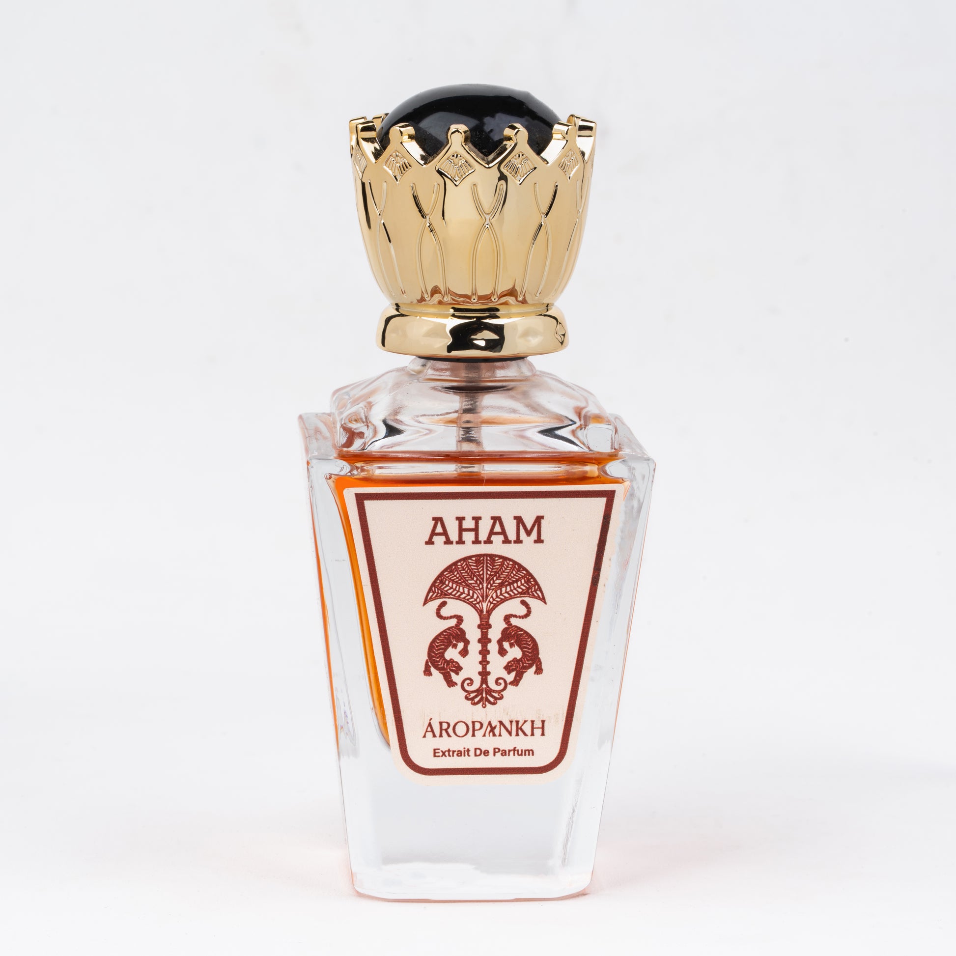 AHAM embodies self-belief and quiet authority. It doesn’t demand attention; instead, it naturally commands it. Warm, smooth, and deeply comforting, AHAM envelops you in an aura of confidence and inner strength. This fragrance is for those who possess self-awareness and seek no validation.