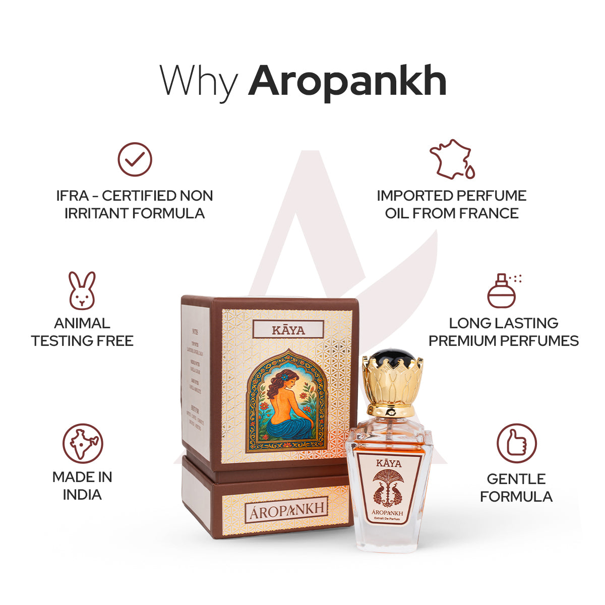 KAAYA encapsulates intimacy in a bottle. This creamy, skin-hugging fragrance feels warm, soft, and personal. It effortlessly blends with your natural scent, creating a comforting aura that is both familiar and sensual akin to a gentle embrace.