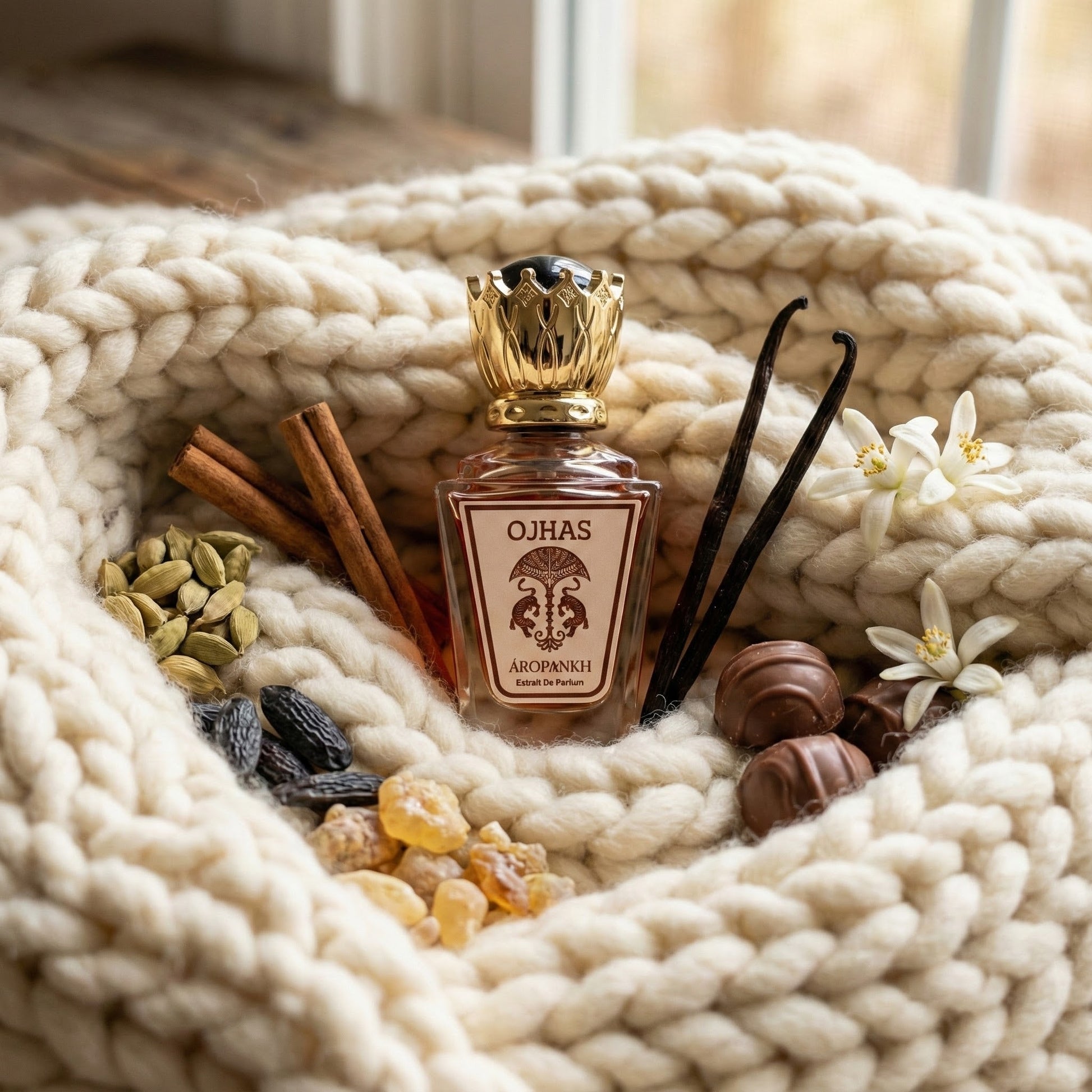 OJHAS radiates inner warmth. Soft spices and luminous vanilla create a fragrance that feels